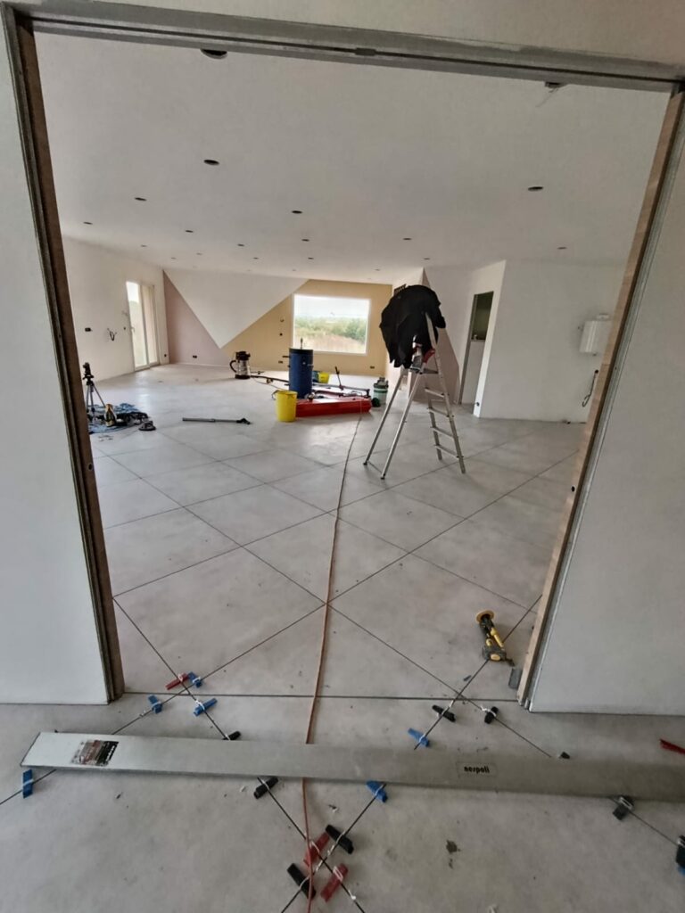 Pose précise de carreaux grands formats pour un rendu contemporain.
